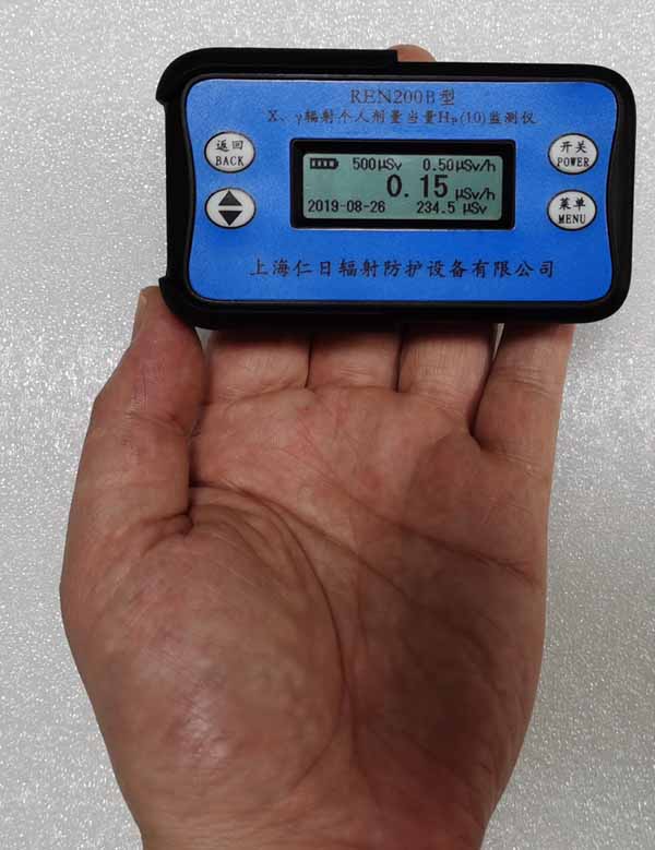 REN200B型X、γ輻射個(gè)人劑量當(dāng)量HP(10)監(jiān)測(cè)儀(簡(jiǎn)稱:個(gè)人劑量報(bào)警儀)內(nèi)置高量程蓋格計(jì)數(shù)管為探測(cè)器,主要用來(lái)監(jiān)測(cè)各種放射性工作場(chǎng)所的X、γ以及硬β射線的輻射,具有較寬的測(cè)量范圍。能顯示工作場(chǎng)所的劑量當(dāng)量率和累積劑量,更換電池時(shí),日期及累積數(shù)據(jù)能永久保存。可選配RenRiPersonal個(gè)人劑量管理軟件,該軟件可存儲(chǔ)多個(gè)人的歷史數(shù)據(jù),能記錄日累積、月累積、年累積、輻照時(shí)長(zhǎng)、計(jì)算平均劑量率、扣除或不扣除本底輻射,且以文字和圖譜的方式展現(xiàn)數(shù)據(jù)。廣泛應(yīng)用于核電站、加速器、鋼鐵、化工、同位素應(yīng)用、工業(yè)X、γ無(wú)損探傷、放射醫(yī)療、鈷源治療、γ輻照、放射性實(shí)驗(yàn)室、核設(shè)施周圍環(huán)境監(jiān)測(cè)等領(lǐng)域中的工作人員進(jìn)行個(gè)人安全防護(hù)監(jiān)測(cè)及放射性提示。